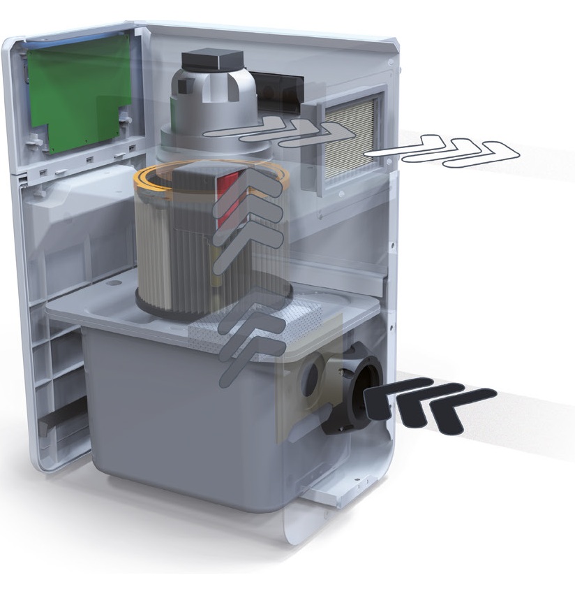 I dispositivi sono dotati di un comando EMC, che gestisce in modo automatico le fasi di avvio e arresto, offrendo una gestione smart delle operazioni. Non solo gli aspiratori LABÒ sono estremamente potenti, ma risultano anche sorprendentemente silenziosi, garantendo un ambiente di lavoro confortevole.