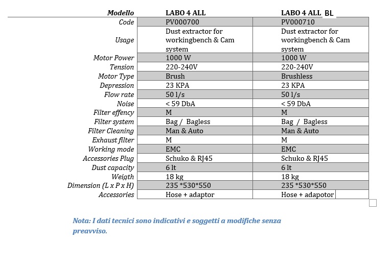 With its versatile design and high-level performance, the LABO 4 ALL stands out in the market as a premium-quality vacuum. It is the perfect choice for professionals seeking a solution that adapts to multiple suction tasks without compromises on suction power.