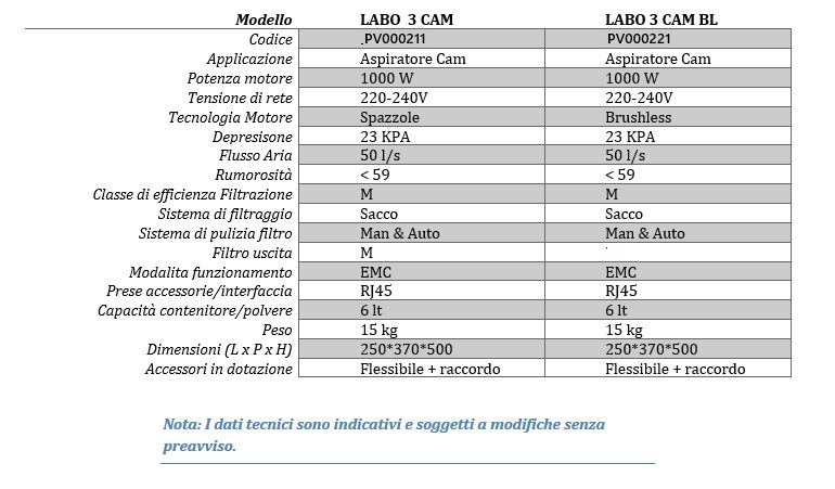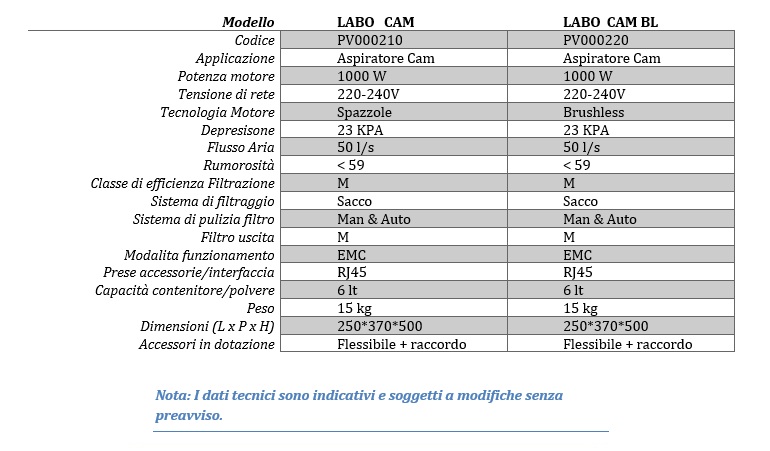 - Filtrazione elevate : La qualità dei filtri utilizzata garantisce il massimo filtraggio delle polveri